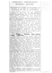 Scruton History Photo Archive Tom Barker, Bill Hewison, Henry Firby and Mrs Heslewood at cross lanes farm By Trevor Howe | 7 July 2007 Posted in 1930s Read More about Tom Barker, Bill Hewison, Henry Firby and Mrs Heslewood at cross lanes farm Old Mrs Fothergill and Mr Kemp at Mount Pleasant By Trevor Howe | 7 July 2007 Posted in 1930s Read More about Old Mrs Fothergill and Mr Kemp at Mount Pleasant The Rector (Rev.Alfred Coore) Officiated By Trevor Howe | 7 July 2007 Posted in 1930s Read More about The Rector (Rev.Alfred Coore) Officiated Secratary Harry Knowles.New Mower £31.90 By Trevor Howe | 7 July 2007 Posted in 1930s Read More about Secratary Harry Knowles.New Mower £31.90 Cricket Club Receipt By Trevor Howe | 7 July 2007 Posted in 1930s Read More about Cricket Club Receipt Cricket Score book 1938 By Trevor Howe | 7 July 2007 Posted in 1930s Read More about Cricket Score book 1938 Plan of the Village By Trevor Howe | 7 July 2007 Posted in 1930s Read More about Plan of the Village Scruton Cricket Team in the Mid 30’s By Trevor Howe | 7 July 2007 Posted in 1930s Read More about Scruton Cricket Team in the Mid 30’s Postcard By Trevor Howe | 7 July 2007 Posted in 1930s Read More about Postcard Parish Council Minutes 1938 By Trevor Howe | 7 July 2007 Posted in 1930s Read More about Parish Council Minutes 1938 « Previous 1 … 18 19 20 21 22 … 30 Next »